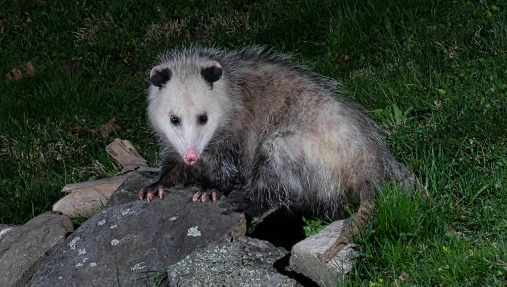 I peeled it off the road with my camp knife and proceeded to process it only a few feet removed from the two-lane highway much to the concern of passing motorists many of whom took great pains to insult my person as they drove by, doubtless on their way home to what I will assume to be a trailer park, the natural habitat of the willfully uninformed. Busy in my work I ignored their jibes only scurrying into the tree line when I noted the flashing lights that normally presage the arrival of local law enforcement. Needless to say, this was well worth the embarrassment as I sit down to some possum stew and a fresh batch of Pringles.